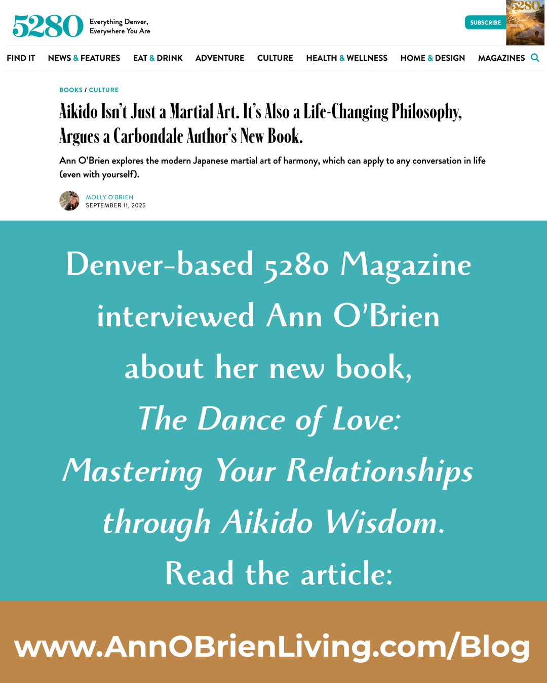 Denver-based magazine 5280 featured Ann O’Brien’s new book, The Dance of Love: Mastering Your Relationships through Aikido Wisdom. Journalist Molly O’Brien shared key points from an interview with the author, including:
